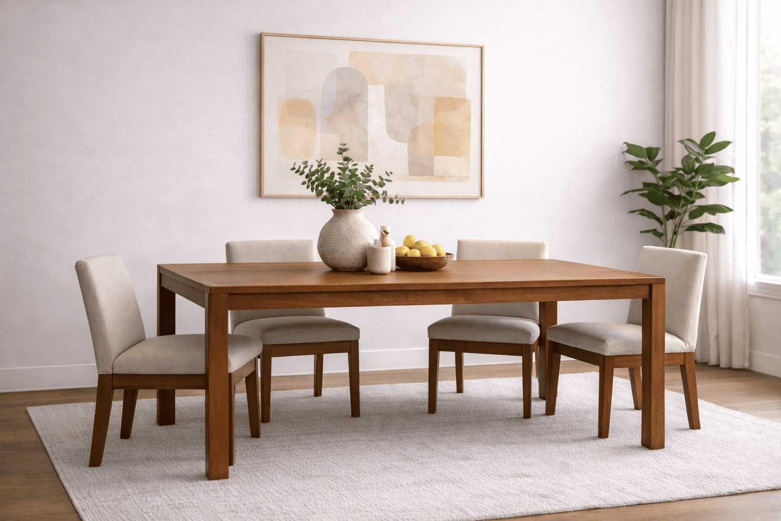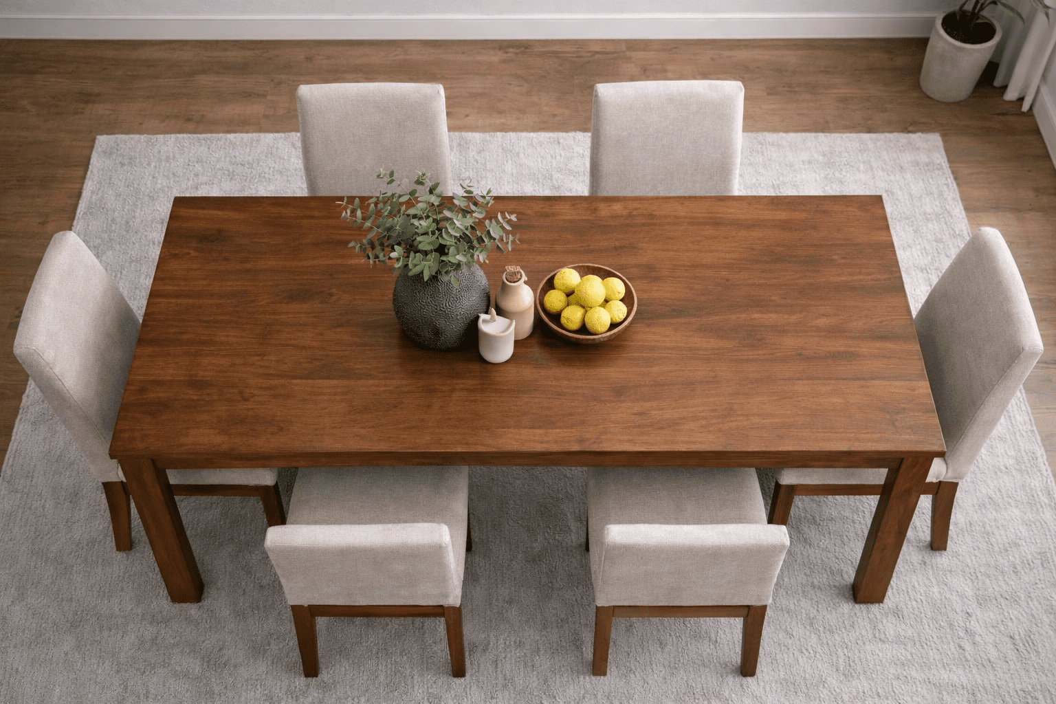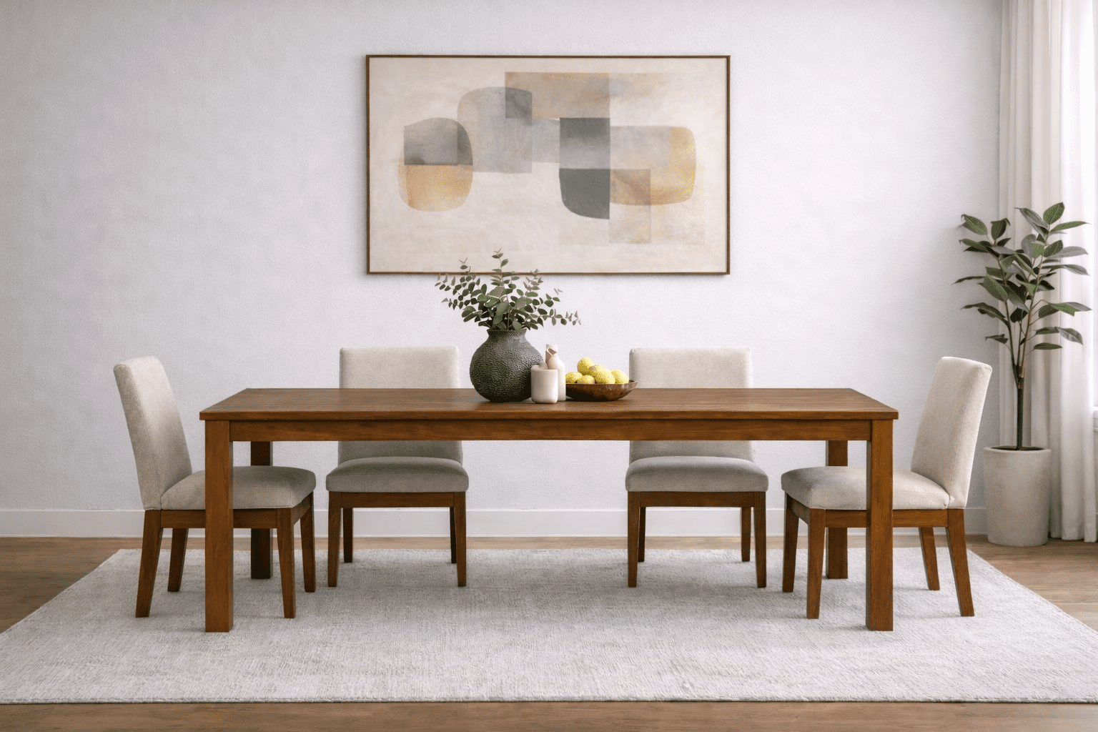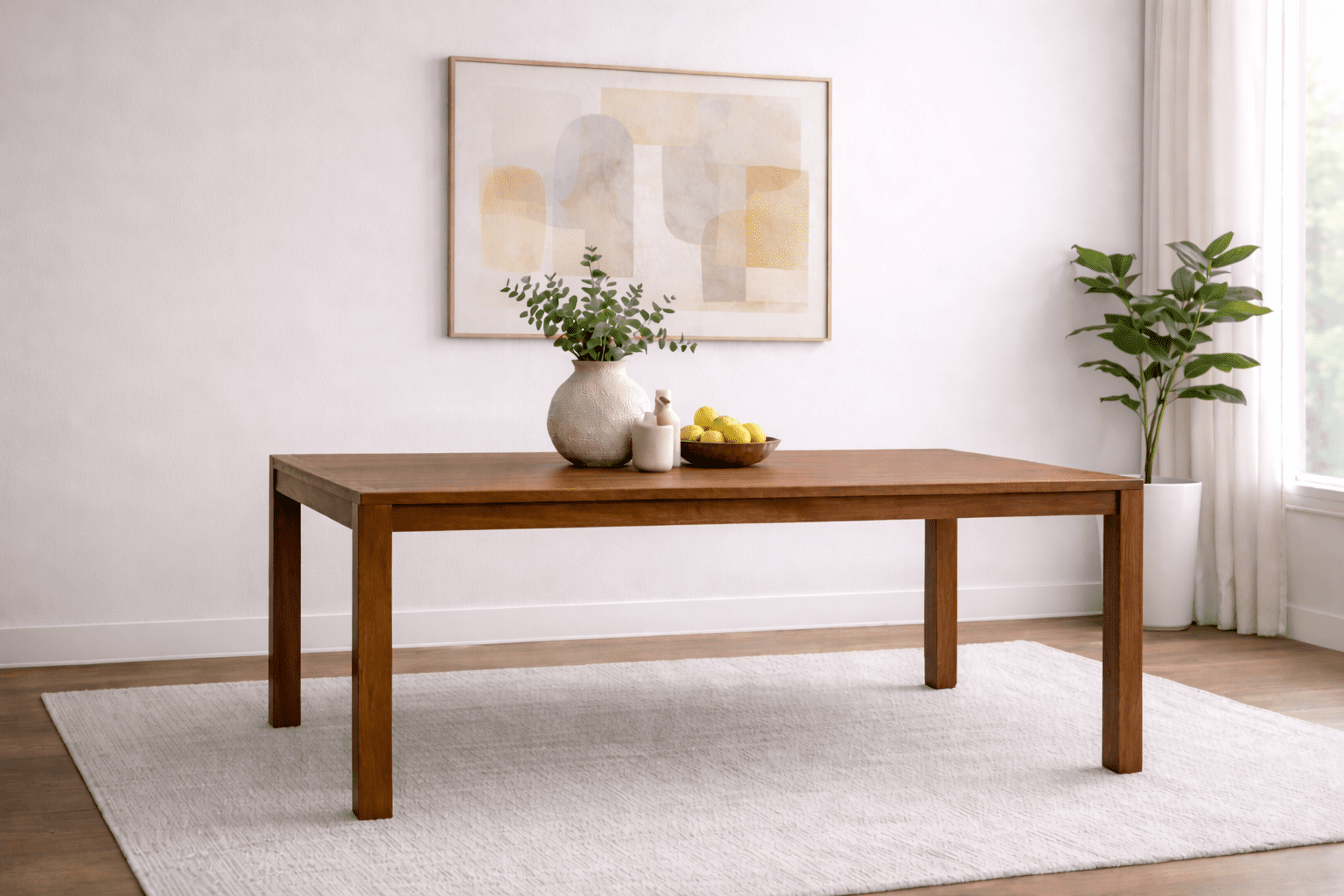 The Madison Dining Table features solid hardwood construction with clean lines and balanced proportions, creating a design that feels both refined and timeless. Its thick top and squared legs offer a strong, understated presence, while the natural wood grain adds warmth and character. Built by hand in Chicago from carefully selected hardwood, each piece is made to order and designed to fit seamlessly into a wide range of dining spaces.